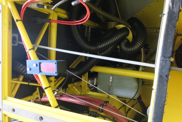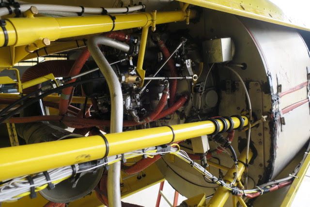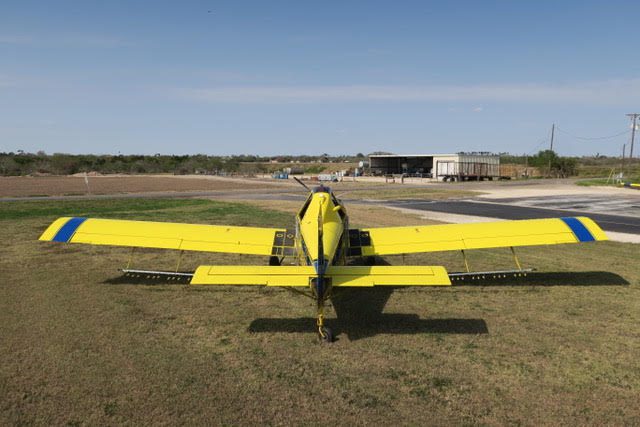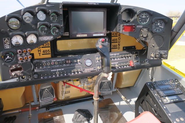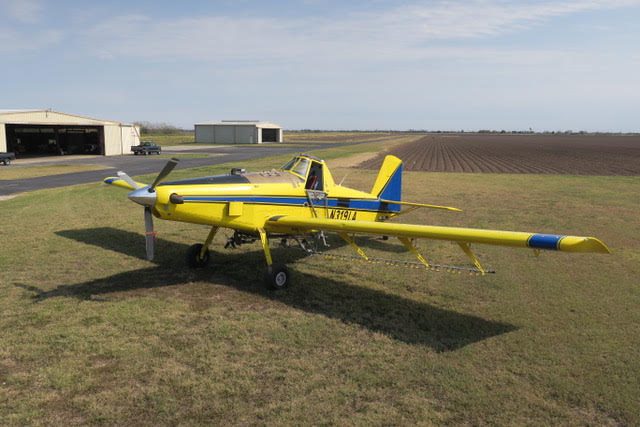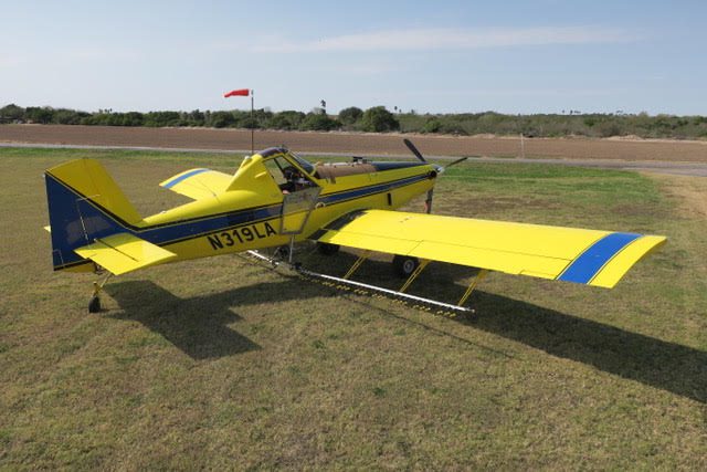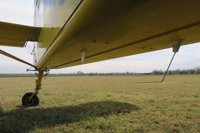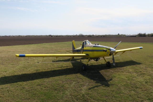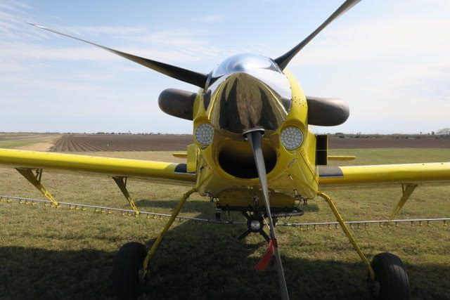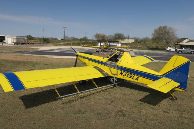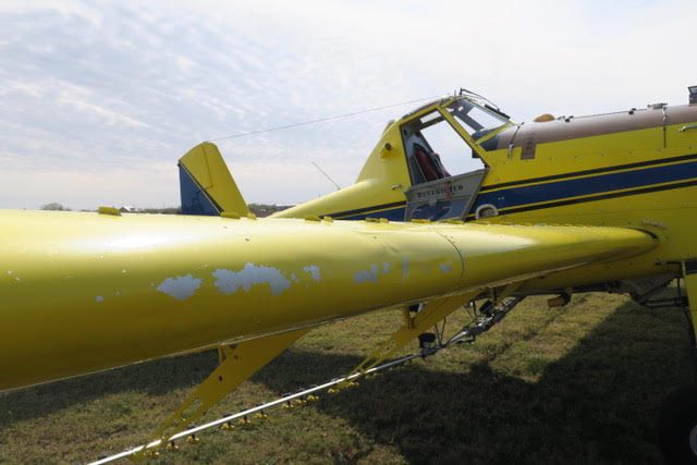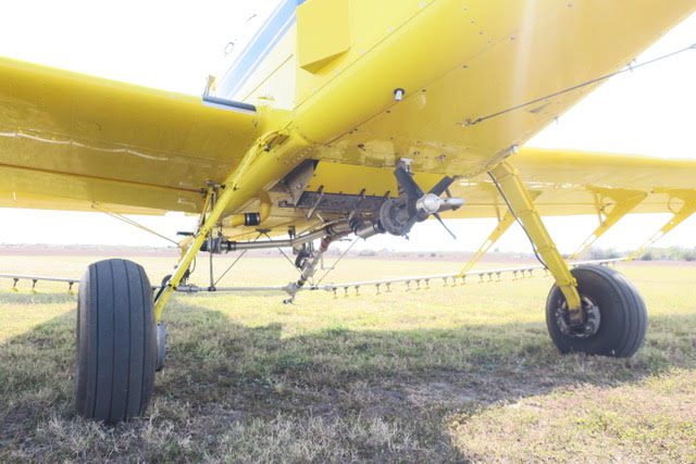 2 inch spray system, streamlined drop boom system, 2” bottom loading valve, Transland special 38″ wide gate, 500 gallon fiberglass hopper, pump shut-off valve, 3 color polyurethane paint finish, 29 x 11 tires and wheels with dual 3 piston brakes, 3 blade constant speed reversing Hartzell propeller, 250 amp starter-generator, electrically operated high lift flaps with aileron droop, strobes, nav, inst., nose mounted landing lights, windshield wiper and washer, ground start receptacle, outside air temperature gage, fiberglass wing fairings, Hoerner wing tips, fuel filter warning light, hopper rinse tank, Reabe hopper gauge, smoker, factory air-conditioning, all metal empennage, and ram air induction.